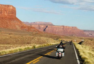 O mais surpreendente para mim foi a sensação do tempo voando, mais rápido que as nossas próprias motos, o dia se acabava rapidamente e a vontade se sentar novamente na minha HD era cada vez maior. A média de 400 km e a previsão de 8 a 9 horas diárias de estrada foram “engolidas” num piscar de olhos. Percebi desde os primeiros instantes sobre as duas rodas, abolindo a previsão inicial de que percorreríamos horas e horas até chegar em algum lugar aprazível e de descanso merecido. Ao contrário disso, a cada trecho pilotado, se renovava o espírito aventureiro, as paisagens que envolviam nosso caminho eram a todo instante de uma beleza indescritível, as estradas mudando constantemente de direção, nível e de condições, me levaram a uma constante sensação de querer cada vez mais.Extasiado pela visão de tantas belezas durante os trajetos, chegávamos aos pontos de visitação. Por mais que não pudesse crer, devido tudo aquilo que acabava de ver nos trechos percorridos, me via diante de colossos naturais como o Grand Canyon, Bryce Canyon, Monument Valley, Rio Colorado…